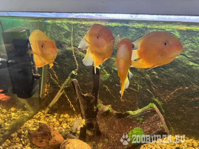 Popis: Prodám 4 rybky kančík červenooký red spotted -Heros severum red spotted – ruším akvárium. Jsou v 500 l akvárku. Velikost rybky je cca 15-16 cm – jsou to krásné velké rybky. Prodej jen všech najednou. Celkem cena za všechny 3000 Kč. Pouze osobní odběr v Kralupech nad Vltavou.