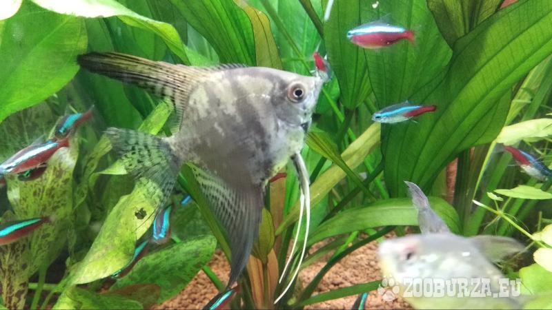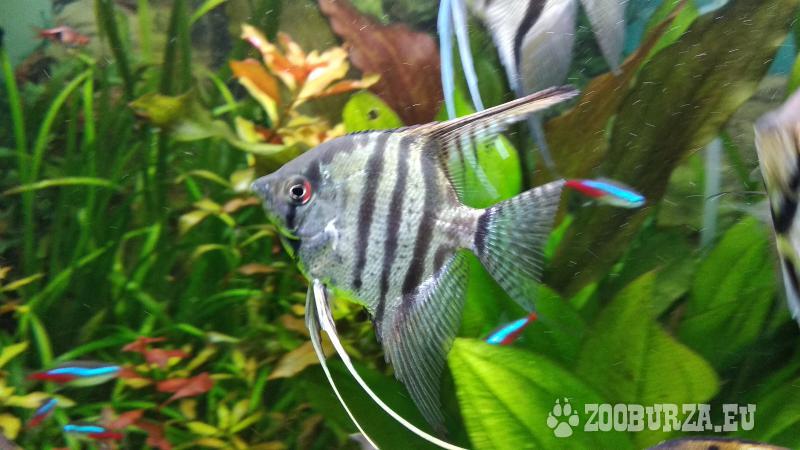 Popis: Prodám skaláry z vlastního odchovu,varianta zebra a mramor,velikost 6+ v těle.