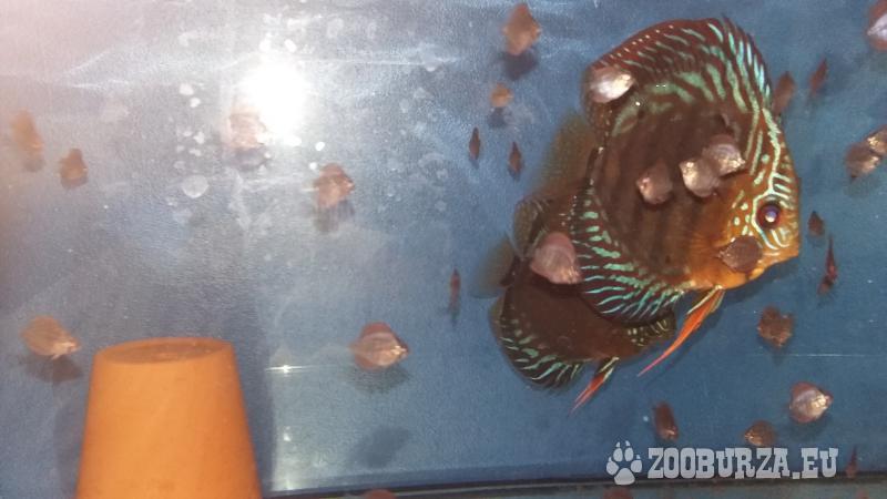 Popis: Prodám překrásné terčovce ze špičkového chovu 3 chovné páry discus pigeon checkerboard vel. 17 cm, cena za jeden pár 3500,- Kč, jeden chovný pár discus blue sapphire vel. 12 cm, cena 2000,- Kč za pár, 4 kusy discus blue sapphire vel. 12 cm, cena 800,- Kč/ks, 6 kusů discus red melon vel. 12 cm, cena 900,- Kč/ks, 2 chovné páry discus red tyrkys vel. 12 cm, cena za jeden chovný pár 1800,- Kč, cca 300 kusů discus red tyrkys vel. 1,5 cm, cena 35,- Kč/ks. Kontakt Martin Štujber. Na sms neodpovídám.